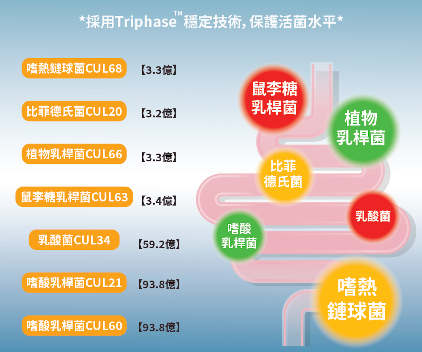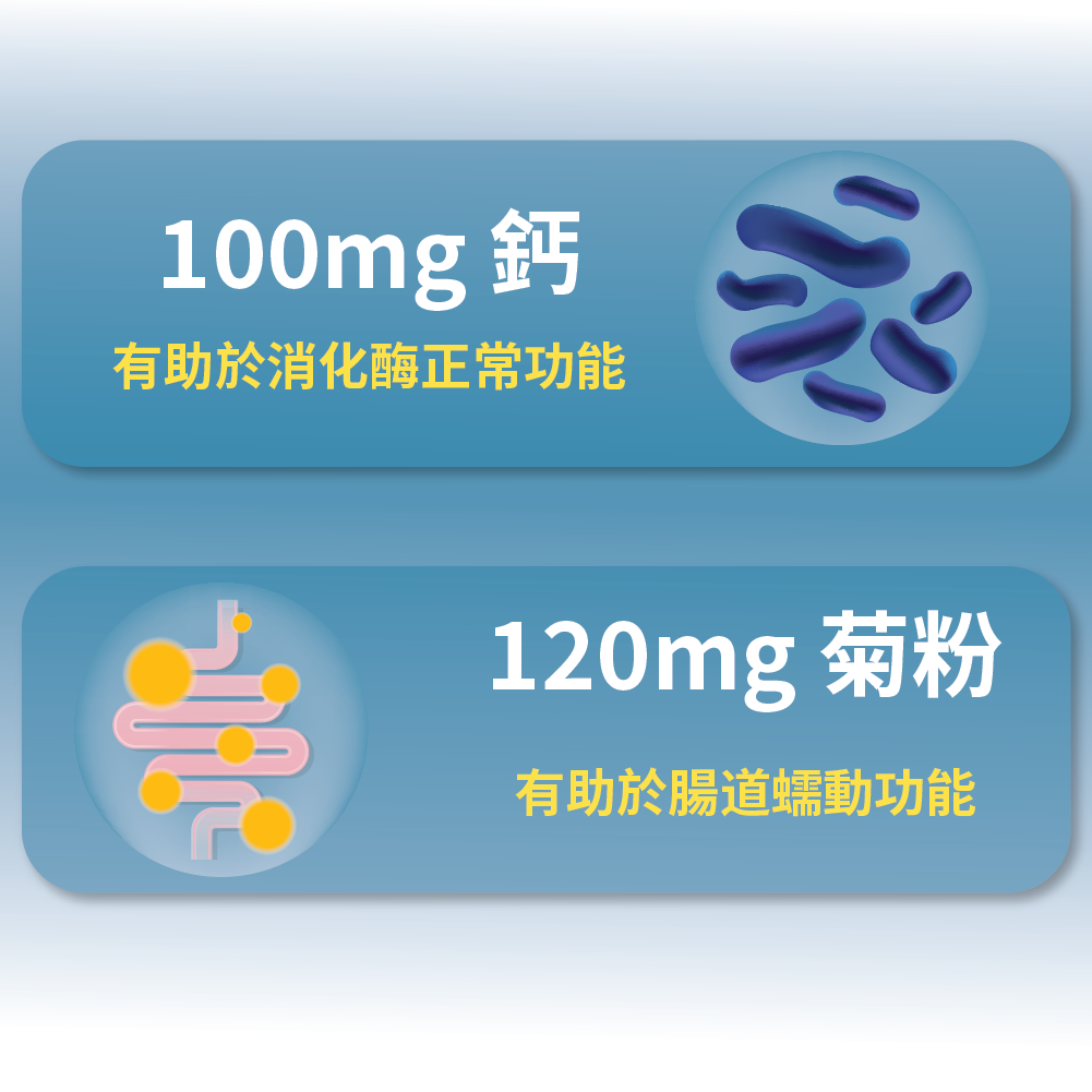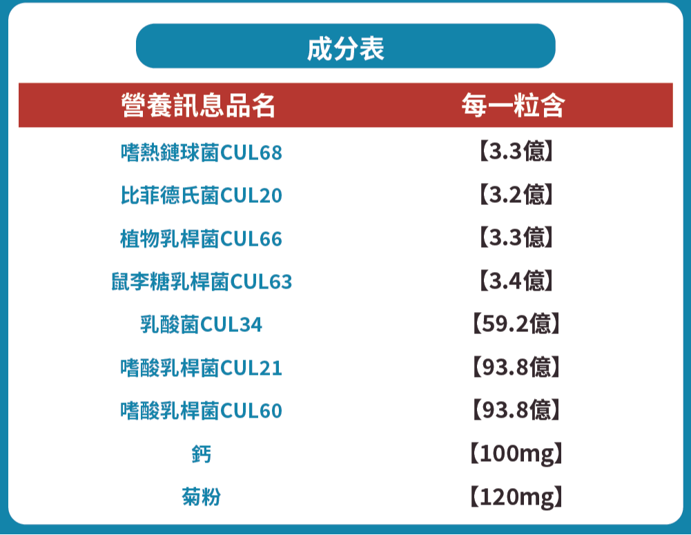 主要成分:7大活性菌株,搭配鈣與菊粉